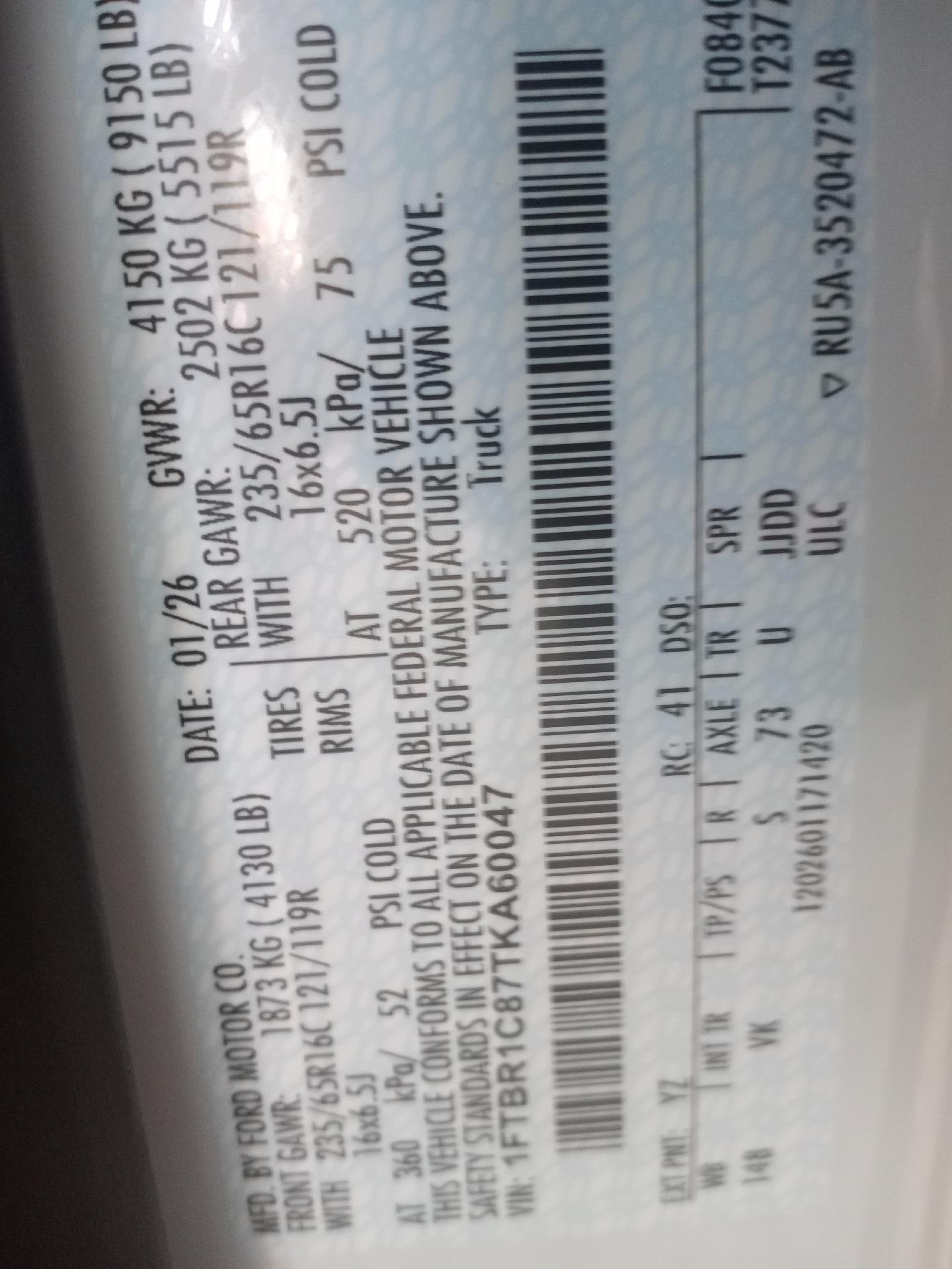 - Front Tire Size: LT235/65RR16