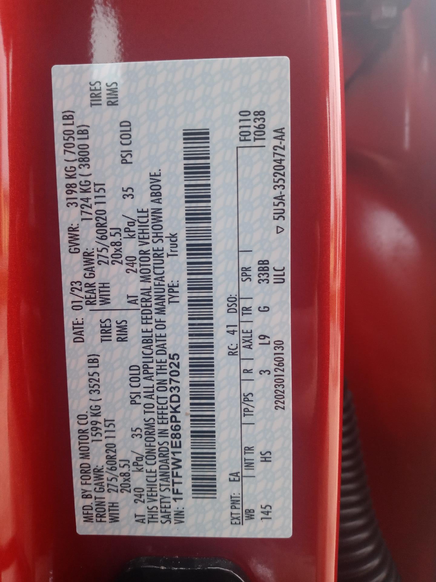 1FTFW1E86PKD37025